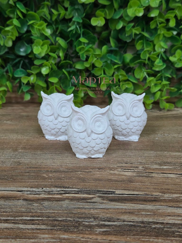 Фина фигурка на бухал, ръчно излята от висококачествена гипсо-керамика с копринено матово покритие. Компактният размер (Ш - 4см / В - 5см) я прави идеална за рафт, нощно шкафче или детски кът, а изящните детайли и леката усмивка внасят усещане за чистота, радост и закрила. Перфектен избор за подарък при кръщене, имен ден или като нежна декорация за детски празник. Порестата повърхност позволява персонализирано оцветяване с акрилни или темперни бои, превръщайки всяко ангелче в уникално творение.